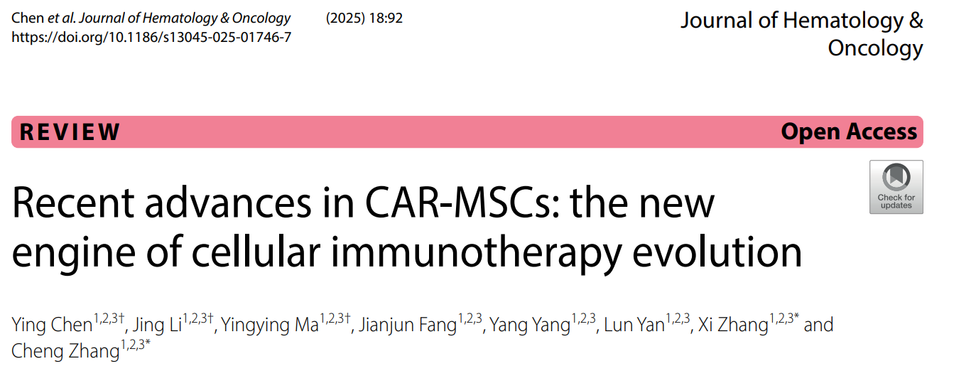 Chen, Y., Li, J., Ma, Y. et al. Recent advances in CAR-MSCs: the new engine of cellular immunotherapy evolution. J Hematol Oncol 18, 92 (2025). https://doi.org/10.1186/s13045-025-01746-7